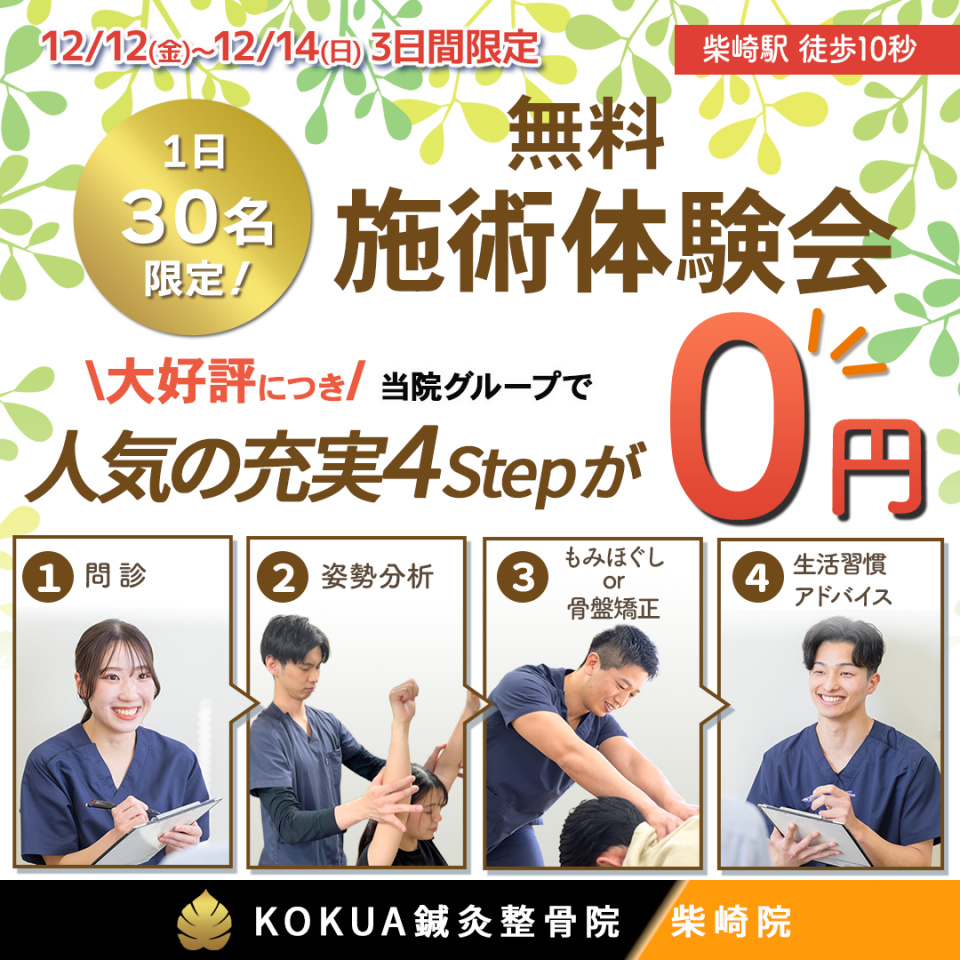 KOKUA鍼灸整骨院 柴崎院でございます。